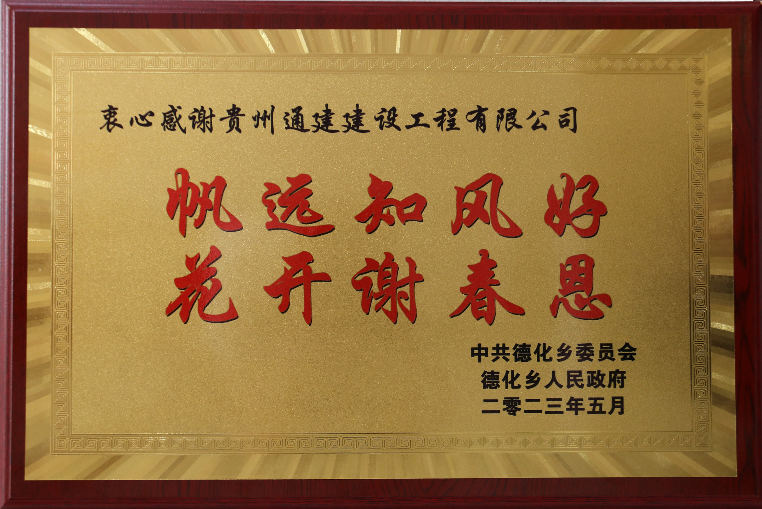 一块牌匾,既是一份肯定,更是一份责任。作为黎平本地企业,我们贵州通建公司为感恩时代,以实际行动回馈社会,将继续一如既往的践行企业社会责任,并以此作为贵州通建公司义不容辞的职责,不辜负各级党委政府和人民群众的信任和期望,力所能及为巩固拓展脱贫攻坚成果,助力黎平县乡村全面振兴作出新的贡献。