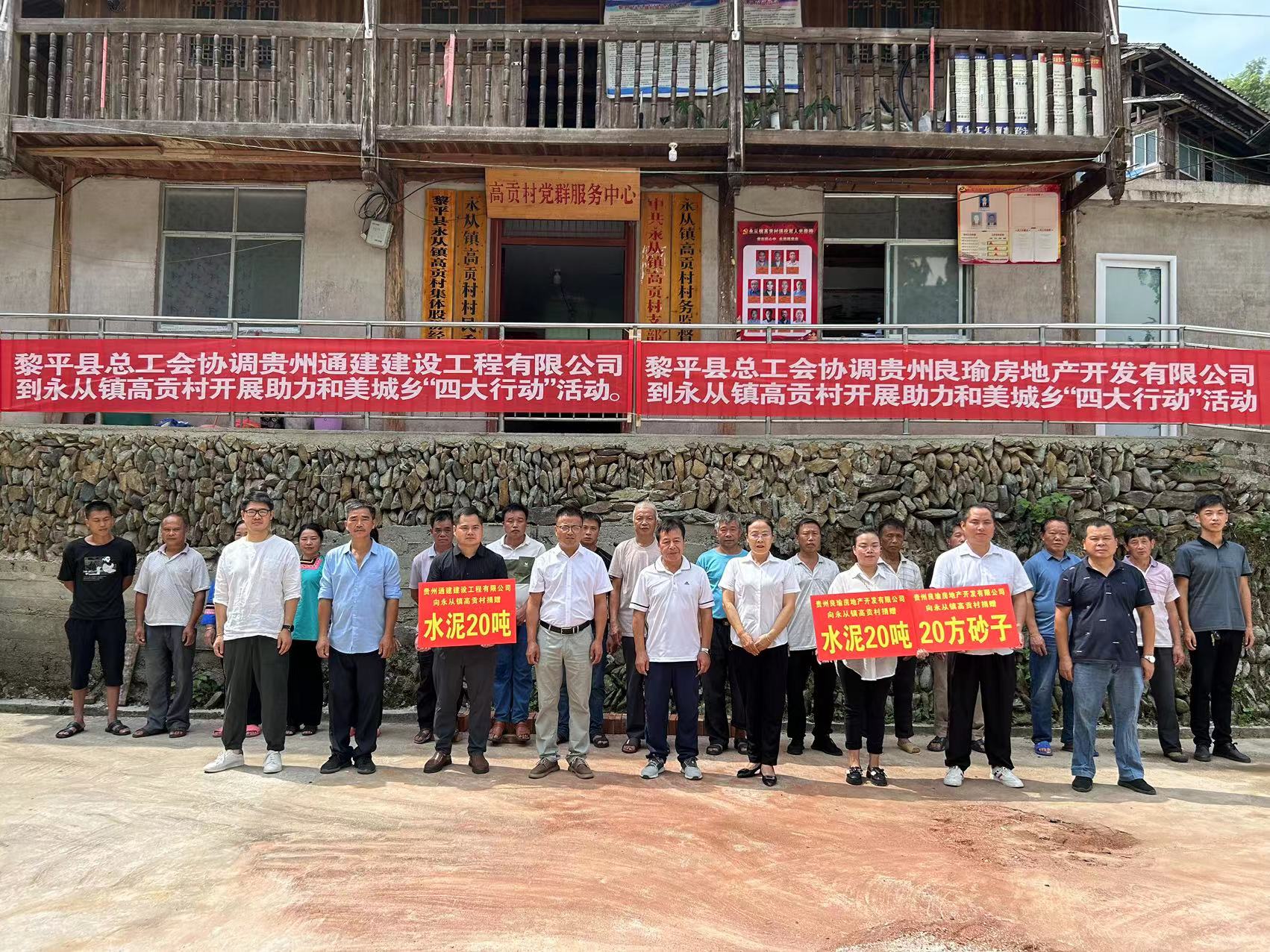 自和美城乡“四大行动”工作开展以来,贵州通建公司积极响应,全力支持。就今年7月底,黎平县总工会协调开云在线登录到永从镇高贡村开展助力和美城乡“四大行动”活动,活动中开云在线登录向高贡村捐赠20吨水泥,用于该村的基础设施建设。