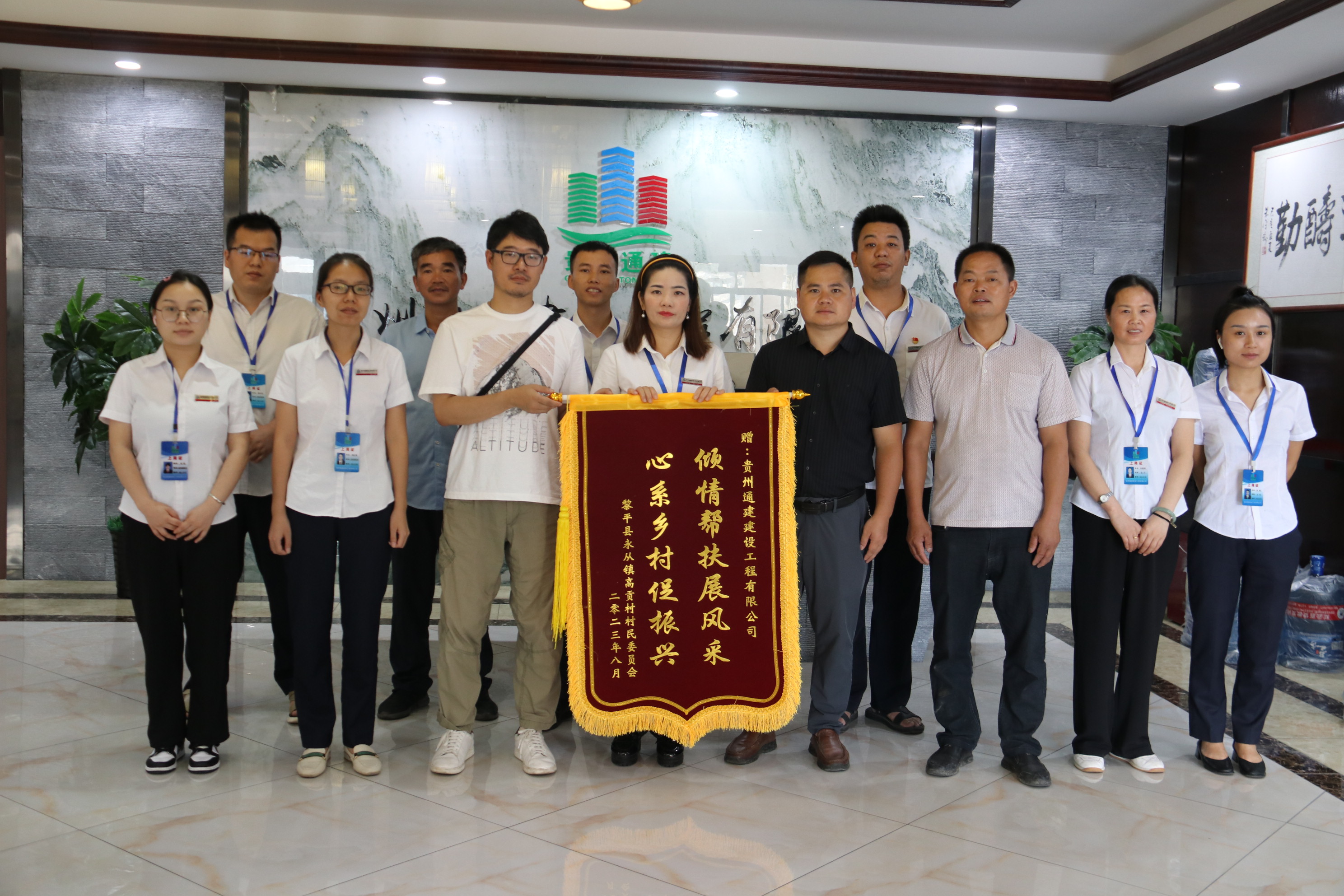 2023年8月4日上午,黎平县永从镇高贡村驻村第一书记秦周斌、村支书陆家高、村监委陆家宏等一行专程来到开云在线登录,代表永从镇高贡村村民委员会及高贡村的父老乡亲,将一面印有“倾情帮扶展风采,心系乡村促振兴”的锦旗,亲手赠送到开云在线登录常务副总经理吴香柳、总经理助理付金成手中,以感谢贵州通建公司在和美城乡“四大行动”中对高贡村的倾情帮扶、助力乡村振兴、办实事、做好事、解难事表达最诚挚的谢意。 查看更多08-042023 -